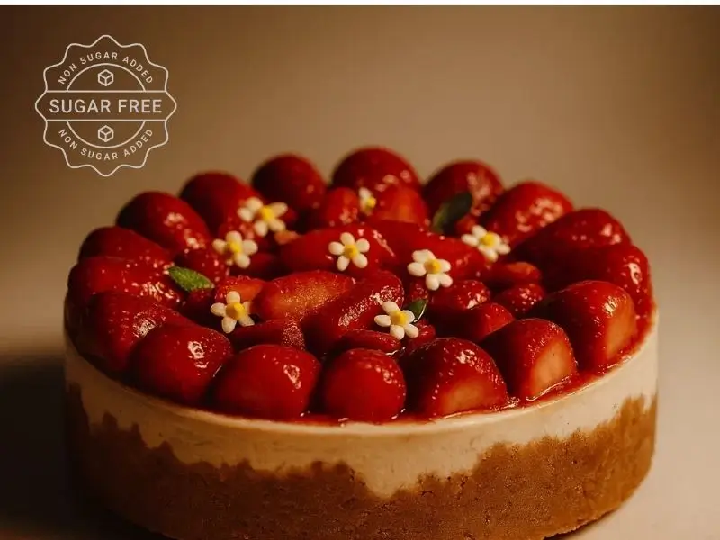 El cheesecake sin azúcar de fresas destaca por su sabor suave y su aroma fresco. Preparado con una base horneada de queso crema y coronado con una delicada cobertura de fresas, este postre ofrece una experiencia dulce y equilibrada.